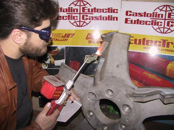 Spray welding systems which protect the metal of deformation that result of used low temperature and improve the surface of the metal by protecting it with suitable mixed materials