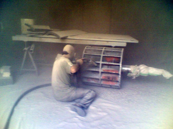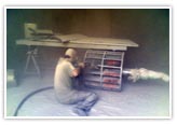 Perform all maintenance work for platforms, reservoirs and bodies of machines by cleaning with sand and moonstone.